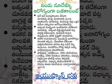 నిండు నూరేళ్ళూ ఆరోగ్యంగా బతకాలంటే #ఎక్కువకాలం సంతోషంగా జీవించాలనంటే ఏం చ...