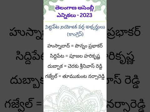 తెలంగాణ అసెంబ్లీ ఎన్నికలు 2023 #సిద్ధిపేట నియోజకవర్గ అభ్యర్థులు కాంగ్రెస...